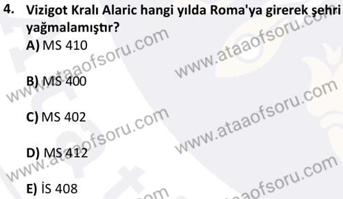 Eskiçağ Avrupa Tarihi Dersi 2024-2025 Güz Dönemi Bütünleme Sınavı Çıkmış Sınav Soruları ve Çözümleri