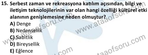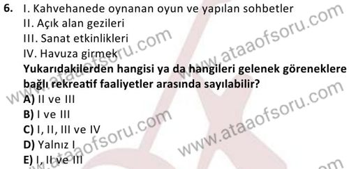 Farklı Kültürlerde Rekreasyon Dersi 2025-2026 Güz Dönemi Ara Sınavı Çıkmış Sınav Soruları ve Çözümleri