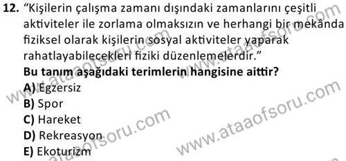 Farklı Kültürlerde Rekreasyon Dersi Ara Deneme Sınavı (10 Kasım)