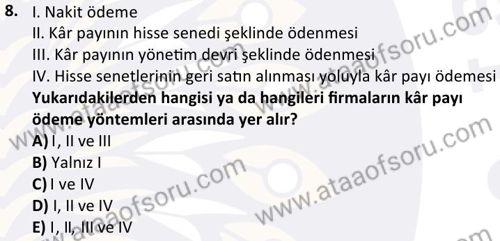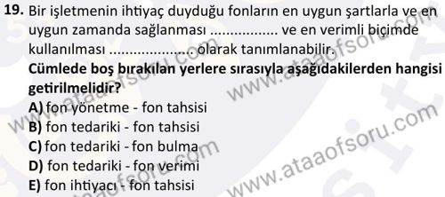 Finansal Yönetim Dersi 2024-2025 Bahar Dönemi Bütünleme Sınavı Çıkmış Sınav Soruları ve Çözümleri