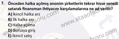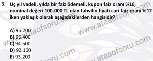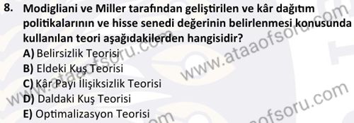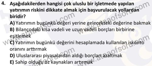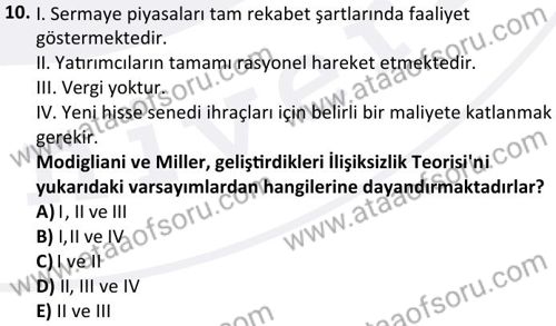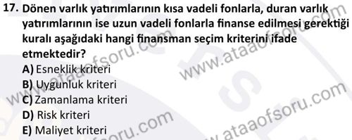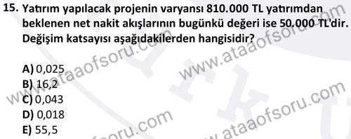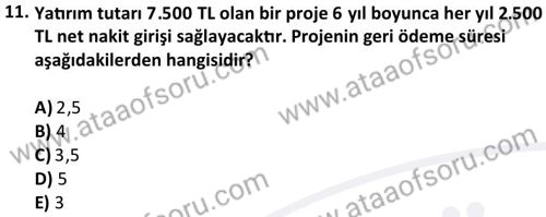 Finansal Yönetim Dersi 2024-2025 Bahar Dönemi Final Sınavı Çıkmış Sınav Soruları ve Çözümleri