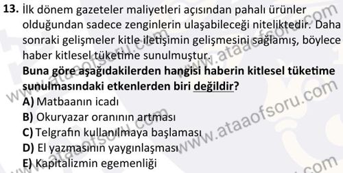 Gazeteciliğe Giriş Dersi 2025-2026 Güz Dönemi Ara Sınavı Çıkmış Sınav Soruları ve Özetleri. Geçmiş dönemlere ait sınav sorularını çözerek sınavlarda gelebilecek soru kalıplarının ve benzer soruları yakalamanız daha kolay olacaktır. Çıkmış sınav soruları ile beraber konu anlatımı, ders özetleri ve online deneme sınavları ile sınavlara hazrılanabilirsin.