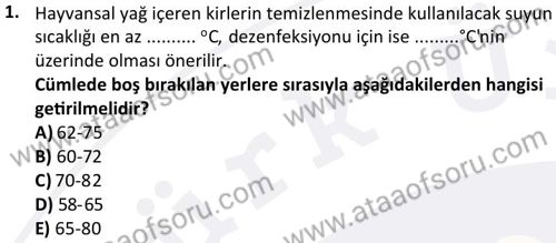 Gıda ve Personel Hijyeni Dersi 2024-2025 Bahar Dönemi Bütünleme Sınavı Çıkmış Sınav Soruları ve Çözümleri