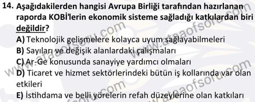Girişimcilik ve Küçük İşletmeler Dersi 2024-2025 Bahar Dönemi Final Sınavı Çıkmış Sınav Soruları ve Çözümleri