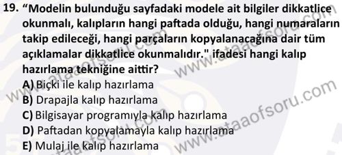 Giysi Konstrüksiyonu Dersi 2024-2025 Bahar Dönemi Final Sınavı Çıkmış Sınav Soruları ve Çözümleri