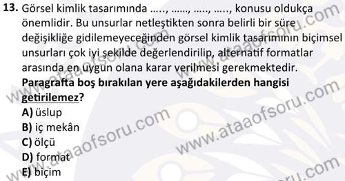 Görsel Kimlik ve Marka Tasarımı Dersi 2024-2025 Güz Dönemi Final Sınavı Çıkmış Sınav Soruları ve Çözümleri