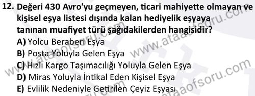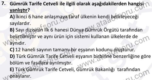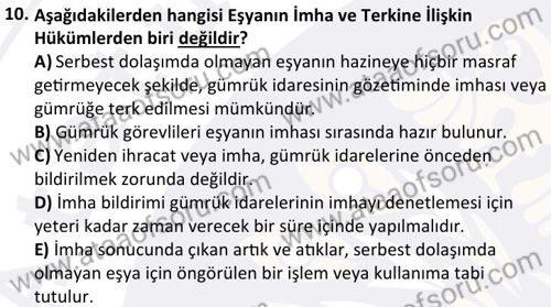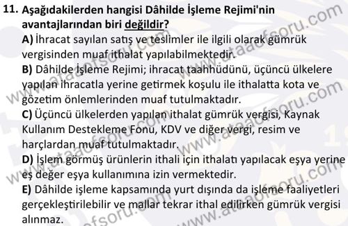 Gümrük Mevzuatı Dersi 2024-2025 Güz Dönemi Bütünleme Sınavı Çıkmış Sınav Soruları ve Çözümleri
