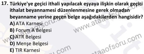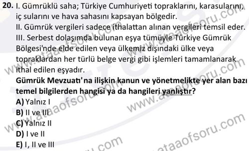 Gümrük Mevzuatı Dersi 2025-2026 Güz Dönemi Final Sınavı Çıkmış Sınav Soruları ve Çözümleri