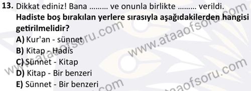Hadis Dersi 2024-2025 Bahar Dönemi Bütünleme Sınavı Çıkmış Sınav Soruları ve Çözümleri