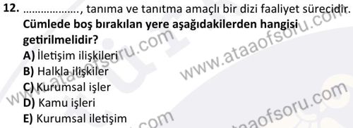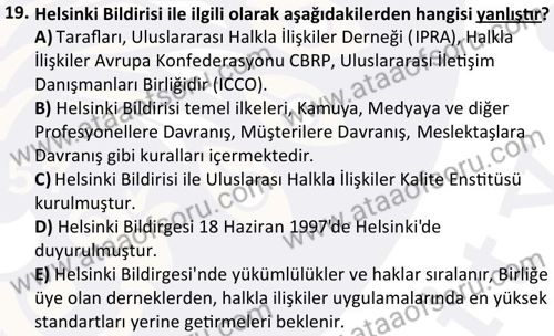 Halkla İlişkiler Dersi 2024-2025 Güz Dönemi Bütünleme Sınavı Çıkmış Sınav Soruları ve Çözümleri