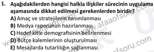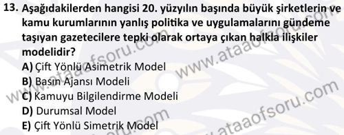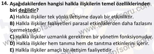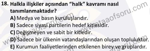 Halkla İlişkiler Dersi 2025-2026 Güz Dönemi Ara Sınavı Çıkmış Sınav Soruları ve Çözümleri