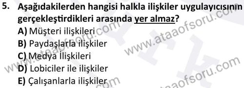 Halkla İlişkiler Kampanyaları Dersi 2024-2025 Güz Dönemi Bütünleme Sınavı Çıkmış Sınav Soruları ve Çözümleri
