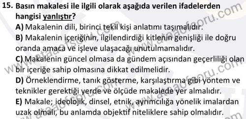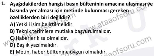 Halkla İlişkiler Yazarlığı Dersi 2024-2025 Güz Dönemi Bütünleme Sınavı Çıkmış Sınav Soruları ve Çözümleri