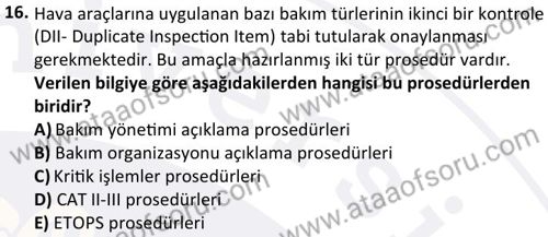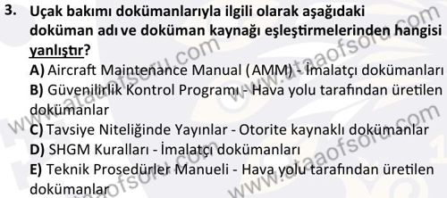 Havacılık Bakım Yönetimi Dersi 2024-2025 Güz Dönemi Bütünleme Sınavı Çıkmış Sınav Soruları ve Çözümleri