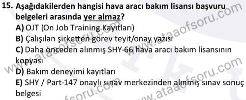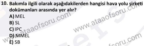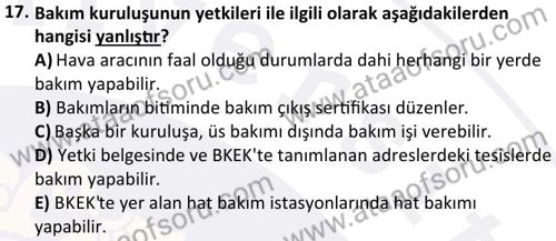 Havacılık Bakım Yönetimi Dersi 2025-2026 Güz Dönemi Final Sınavı Çıkmış Sınav Soruları ve Çözümleri