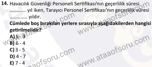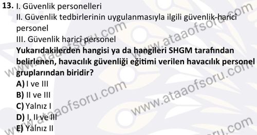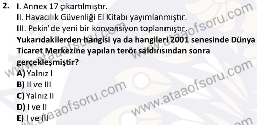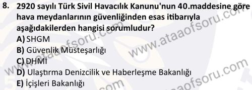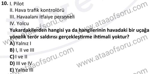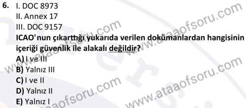Havacılık Emniyeti ve Güvenliği Dersi 2024-2025 Bahar Dönemi Final Sınavı Çıkmış Sınav Soruları ve Çözümleri
