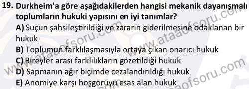 Hukuk ve Suç Sosyolojisi Dersi 2025-2026 Güz Dönemi Ara Sınavı Çıkmış Sınav Soruları ve Çözümleri
