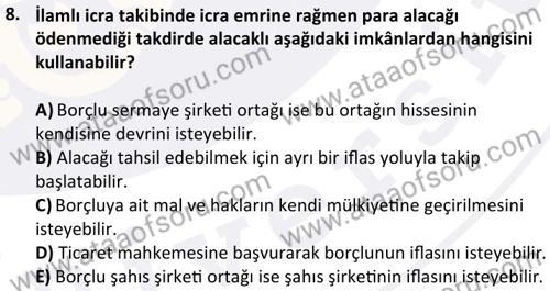 İcra ve İflas Hukuku Dersi 2024-2025 Bahar Dönemi Final Sınavı Çıkmış Sınav Soruları ve Çözümleri