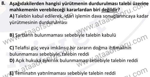 İdari Yargı Dersi 2024-2025 Güz Dönemi Bütünleme Sınavı Çıkmış Sınav Soruları ve Özetleri. Geçmiş dönemlere ait sınav sorularını çözerek sınavlarda gelebilecek soru kalıplarının ve benzer soruları yakalamanız daha kolay olacaktır. Çıkmış sınav soruları ile beraber konu anlatımı, ders özetleri ve online deneme sınavları ile sınavlara hazrılanabilirsin.