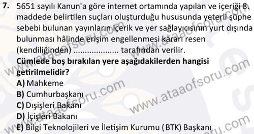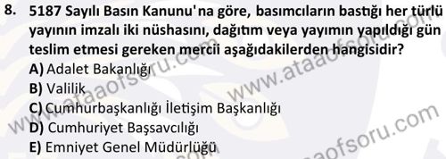 İletişim Hukuku Dersi 2024-2025 Bahar Dönemi Bütünleme Sınavı Çıkmış Sınav Soruları ve Çözümleri
