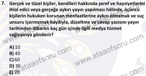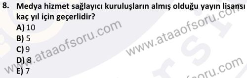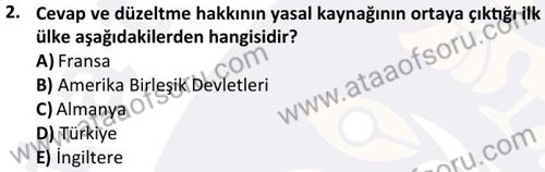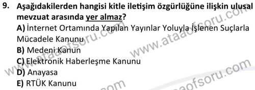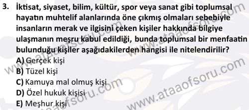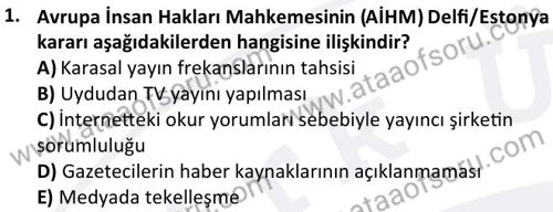 İletişim Hukuku Dersi 2024-2025 Bahar Dönemi Final Sınavı Çıkmış Sınav Soruları ve Çözümleri