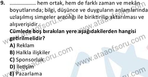 İletişim ve Halkla İlişkiler Dersi 2018-2019 Güz Dönemi Bütünleme Sınavı Çıkmış Sınav Soruları ve Çözümleri