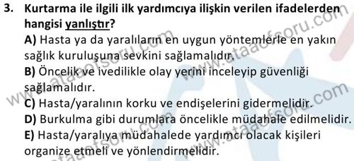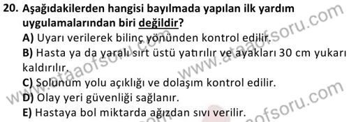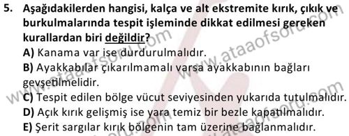 İlk Yardım ve Acil Sağlık Hizmetleri Dersi 2024-2025 Bahar Dönemi Bütünleme Sınavı Çıkmış Sınav Soruları ve Çözümleri