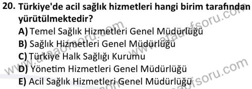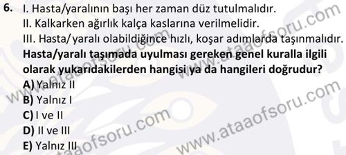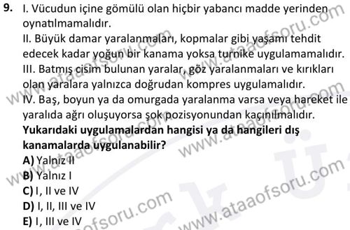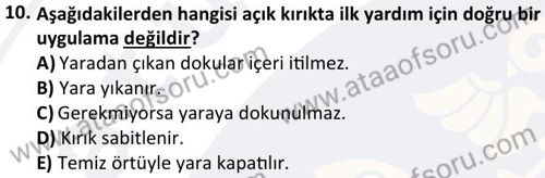 İlk Yardım ve Acil Sağlık Hizmetleri Dersi 2024-2025 Bahar Dönemi Final Sınavı Çıkmış Sınav Soruları ve Çözümleri