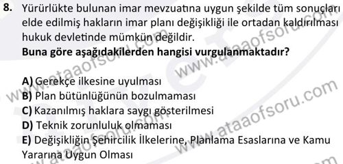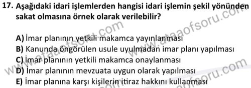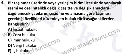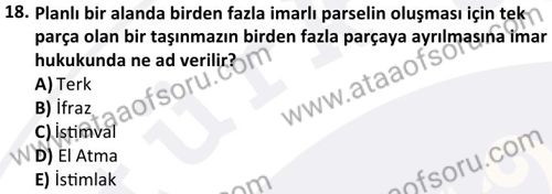 İmar Hukuku Dersi 2024-2025 Güz Dönemi Bütünleme Sınavı Çıkmış Sınav Soruları ve Çözümleri