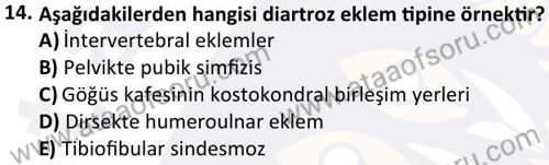 İnsan Anatomisi ve Kinesiyoloji Dersi 2025-2026 Güz Dönemi Ara Sınavı Çıkmış Sınav Soruları ve Çözümleri