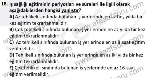İş Hijyeni Dersi 2024-2025 Bahar Dönemi Final Sınavı Çıkmış Sınav Soruları ve Çözümleri