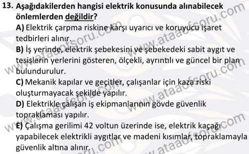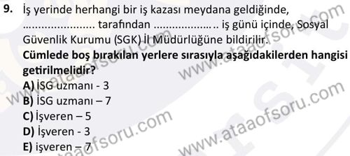 İş Kazaları ve İSG'de Temel Önlemler Dersi 2025-2026 Güz Dönemi Final Sınavı Çıkmış Sınav Soruları ve Çözümleri