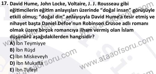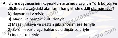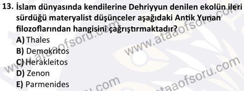 İslam Düşünce Tarihi Dersi 2024-2025 Güz Dönemi Bütünleme Sınavı Çıkmış Sınav Soruları ve Çözümleri