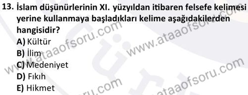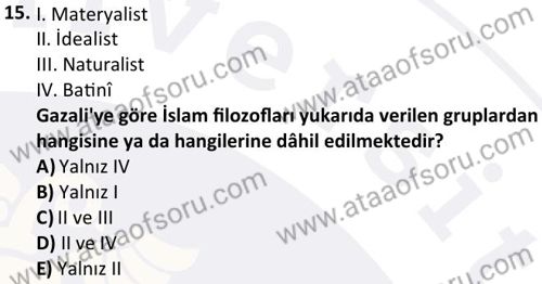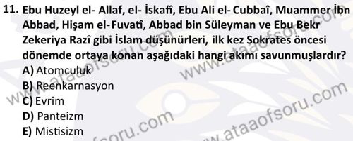İslam Düşünce Tarihi Dersi 2025-2026 Güz Dönemi Ara Sınavı Çıkmış Sınav Soruları ve Çözümleri