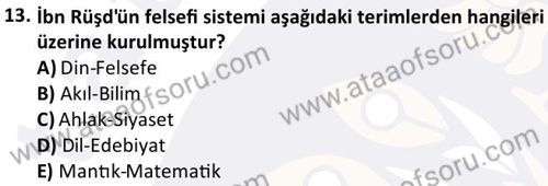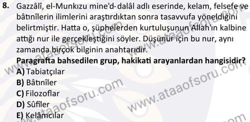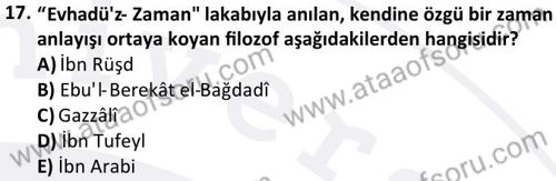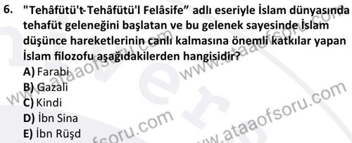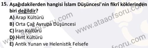 İslam Düşünce Tarihi Dersi 2025-2026 Güz Dönemi Final Sınavı Çıkmış Sınav Soruları ve Çözümleri