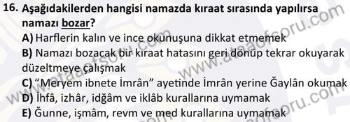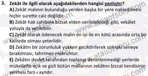 İslam İbadet Esasları Dersi 2024-2025 Güz Dönemi Bütünleme Sınavı Çıkmış Sınav Soruları ve Çözümleri