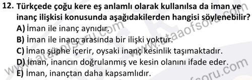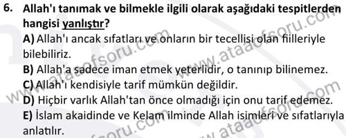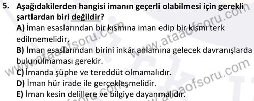 İslam İnanç Esasları Dersi 2024-2025 Güz Dönemi Bütünleme Sınavı Çıkmış Sınav Soruları ve Çözümleri