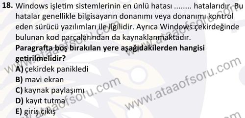 İşletim Sistemleri Dersi 2025-2026 Güz Dönemi Final Sınavı Çıkmış Sınav Soruları ve Özetleri. Geçmiş dönemlere ait sınav sorularını çözerek sınavlarda gelebilecek soru kalıplarının ve benzer soruları yakalamanız daha kolay olacaktır. Çıkmış sınav soruları ile beraber konu anlatımı, ders özetleri ve online deneme sınavları ile sınavlara hazrılanabilirsin.