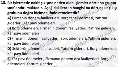 İşletme Finansmanı Dersi 2025-2026 Güz Dönemi Final Sınavı Çıkmış Sınav Soruları ve Özetleri. Geçmiş dönemlere ait sınav sorularını çözerek sınavlarda gelebilecek soru kalıplarının ve benzer soruları yakalamanız daha kolay olacaktır. Çıkmış sınav soruları ile beraber konu anlatımı, ders özetleri ve online deneme sınavları ile sınavlara hazrılanabilirsin.