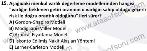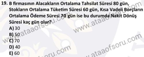 İşletme Finansmanı Dersi 2025-2026 Güz Dönemi Final Sınavı Çıkmış Sınav Soruları ve Çözümleri