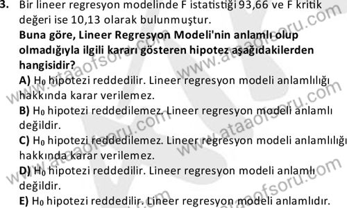 İstatistik Analiz Dersi 2021-2022 Bahar Dönemi Final Sınavı Çıkmış Sınav Soruları ve Çözümleri