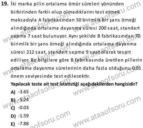 İstatistik Analiz Dersi 2025-2026 Güz Dönemi Final Sınavı Çıkmış Sınav Soruları ve Çözümleri
