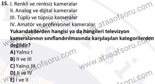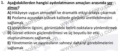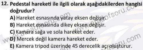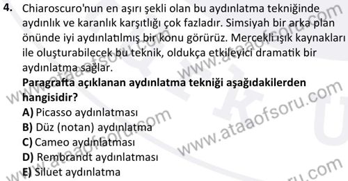 Kamera, Aydınlatma ve Çekim Teknikleri Dersi 2024-2025 Güz Dönemi Bütünleme Sınavı Çıkmış Sınav Soruları ve Çözümleri