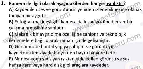 Kamera, Aydınlatma ve Çekim Teknikleri Dersi 2025-2026 Güz Dönemi Ara Sınavı Çıkmış Sınav Soruları ve Çözümleri