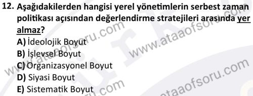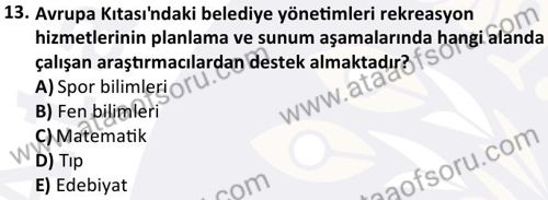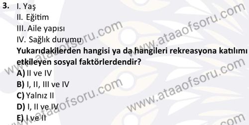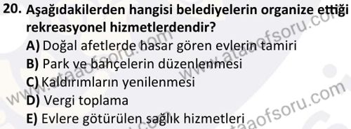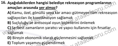 Kamu ve Yerel Yönetim Rekreasyonu Dersi 2024-2025 Bahar Dönemi Bütünleme Sınavı Çıkmış Sınav Soruları ve Çözümleri