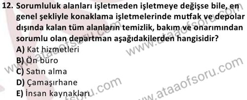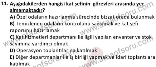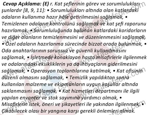 Kat Hizmetleri Yönetimi Dersi 2024-2025 Güz Dönemi Bütünleme Sınavı Çıkmış Sınav Soruları ve Çözümleri