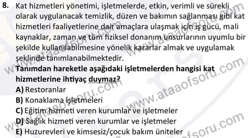 Kat Hizmetleri Yönetimi Dersi 2025-2026 Güz Dönemi Ara Sınavı Çıkmış Sınav Soruları ve Çözümleri