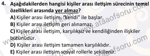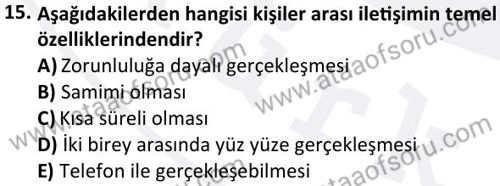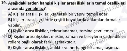 Kişilerarası İletişim Dersi 2024-2025 Bahar Dönemi Final Sınavı Çıkmış Sınav Soruları ve Çözümleri