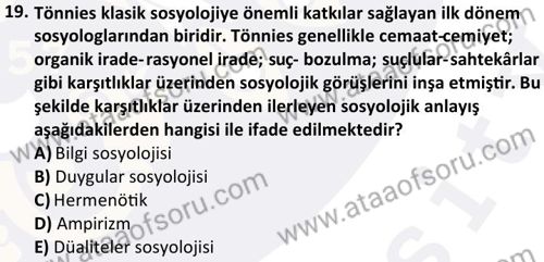 Klasik Sosyoloji Kuramları Dersi 2024-2025 Güz Dönemi Bütünleme Sınavı Çıkmış Sınav Soruları ve Çözümleri