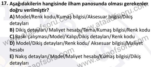 Koleksiyon Hazırlama ve Ürün Geliştirme 1 Dersi 2025-2026 Güz Dönemi Final Sınavı Çıkmış Sınav Soruları ve Çözümleri